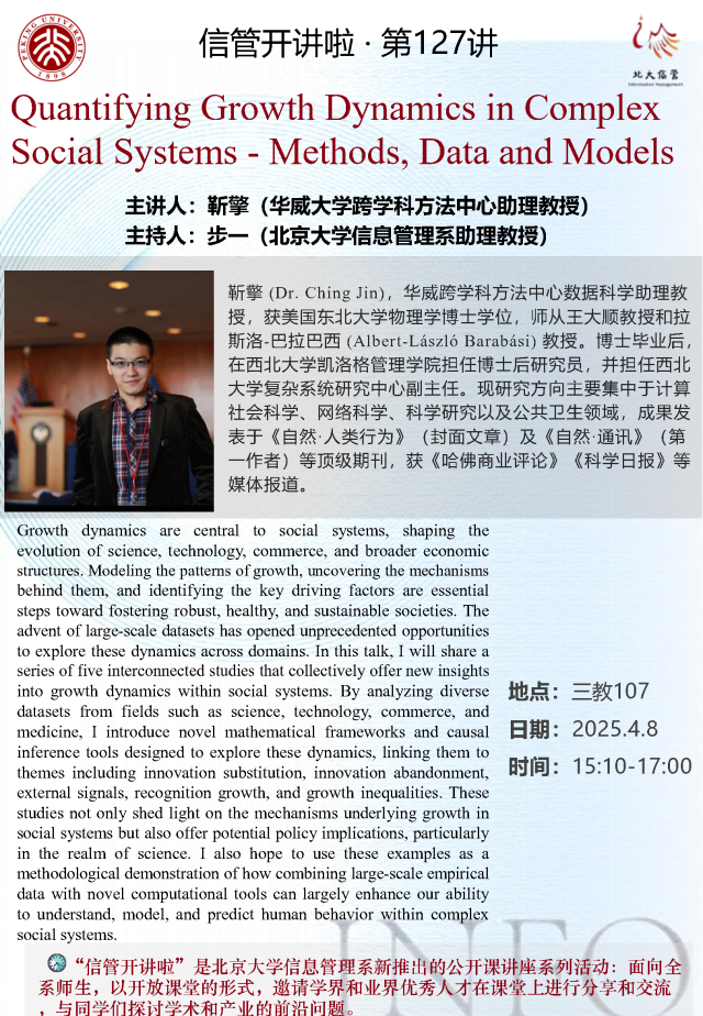 信管开讲啦·第127讲 | Quantifying Growth Dynamics in Complex Social Systems - Methods, Data and Models