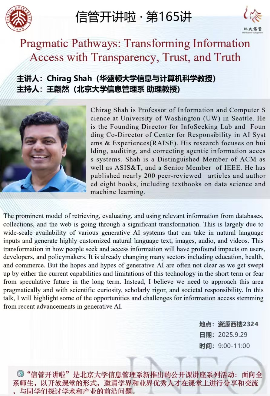 信管开讲啦·第165讲 | Pragmatic Pathways: Transforming Information Access with Transparency, Trust, and Truth