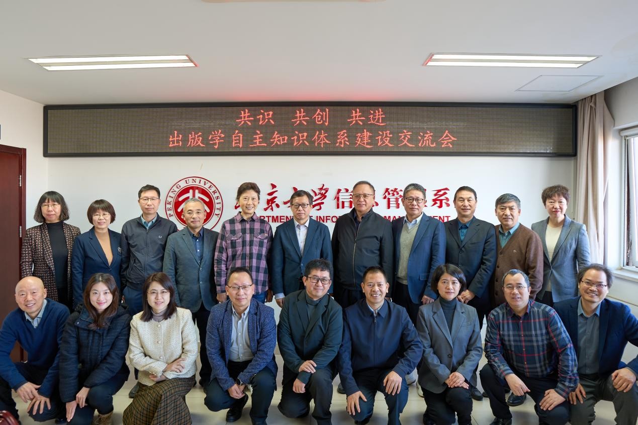 2024年12月23日,由北京大学出版研究院、中国传媒大学出版学院和高等教育出版社共同主办的“共识 共创 共进:出版学自主知识体系建设交流会”在北京大学召开。本次会议旨在落实“2024年度全国出版学科专业共建工作交流会”相关部署要求,聚焦出版学自主知识体系的构建,加强校企科研合作交流,凝聚共识、携手共创,推动出版学科专业共建工作和出版业高质量发展。会议分为三个环节,分别由北京大学信息管理系主任、出版研究院院长张久珍,北京大学信息管理系长聘副教授、出版研究院副院长李世娟和高等教育出版社教材发展研究所综合管理部副主任、编审王友富主持。